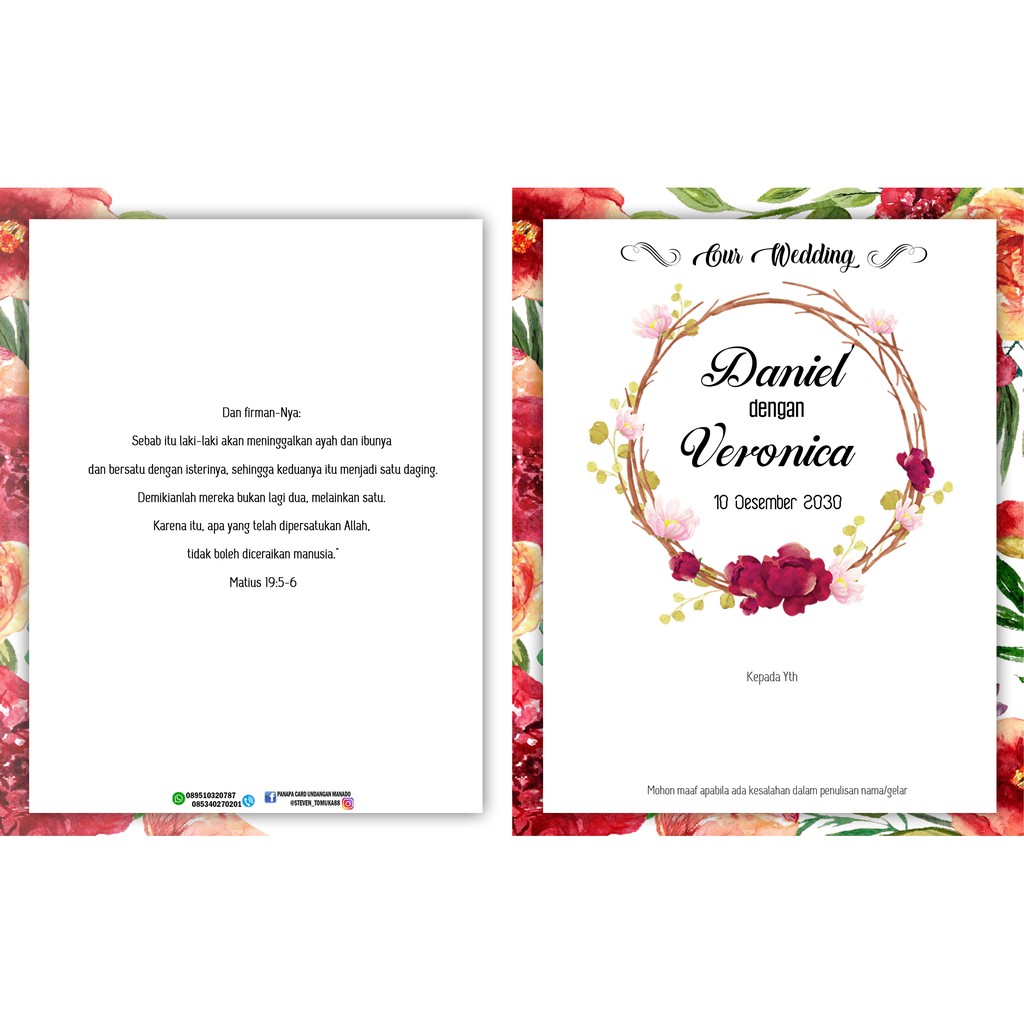 Isi undangan yang akan kami bagikan disini adalah contoh undangan untuk pernikahan islami karena pemesan mayoritas adalah orang orang islam. Contoh undangan dengan bahasa inggris. Surat undangan non resmi adalah surat undangan yang dibuat perseorangan atau kelompok untuk mengundang seseorang dalam kegiatan yang tidak formal seperti undangan pernikahan, undangan sukuran dll. Setiap orang yang menikah tentu menginginkan untuk menikah hanya satu kali saja, walaupun pada kenyataanya banyak yang cerai dan akhirnya menikah kembali dengan. Informasi undangan yang kami bagikan semoga menjadi informasi terbaik dan bisa benrmanfaat untuk semua khususnya informasi tentang contoh undangan pernikahan non muslim terbaru 2020 yang semuanya kami kumpulkan dengan serapih mungkin.